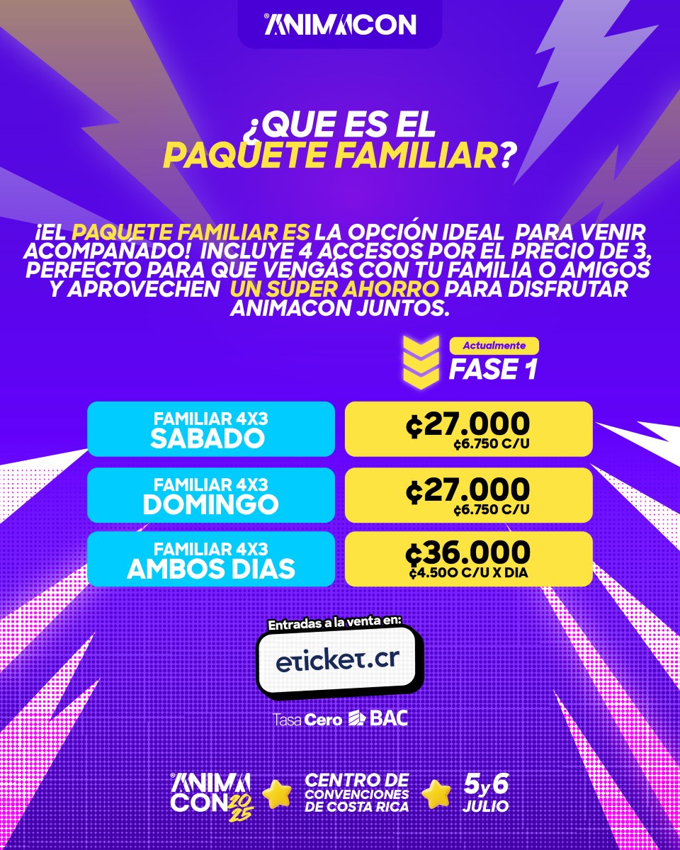 Las entradas ya están disponibles a través de eticket.cr, y el evento abrirá sus puertas desde las 10 a.m. hasta las 7 p.m. ambos días. La AnimaCon 2025 es más que una convención: es una fiesta de la creatividad, la identidad geek y el intercambio cultural. Con talento nacional e internacional, actividades para todos los gustos y una vibrante comunidad, promete ser uno de los eventos más esperados del año.