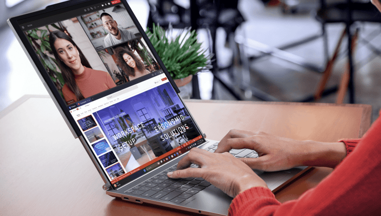 Además de su capacidad de transformación, este equipo cuenta con ThinkBook Workspace, una función que optimiza la experiencia del usuario al permitir la organización de múltiples ventanas en pantalla dividida y ofrecer widgets para el acceso rápido a herramientas clave. La pantalla vertical expandida también contribuye a mejorar la postura y reducir la fatiga visual durante largas jornadas de trabajo.