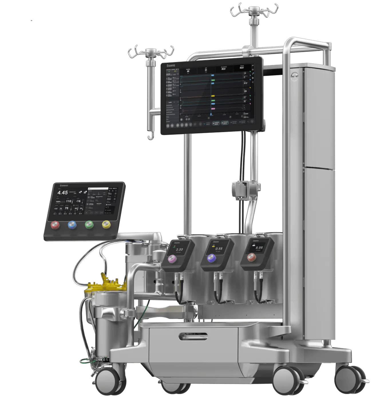 Essenz es un sistema de perfusión que asume temporalmente las funciones del corazón y los pulmones durante las cirugías cardíacas, permitiendo a los especialistas realizar procedimientos con mayor precisión y reduciendo riesgos postoperatorios. Esta tecnología permite la monitorización en tiempo real del paciente, optimiza la oxigenación de la sangre y la regulación de la temperatura, lo que se traduce en una reducción significativa de complicaciones y tiempos de recuperación.