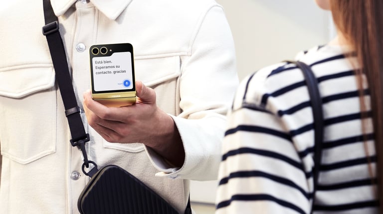 Una de estas soluciones es la función Intérprete de Galaxy AI, diseñada para facilitar la comunicación en tiempo real entre personas que hablan diferentes idiomas. Originalmente presentada en los dispositivos de la serie Galaxy S24, esta herramienta ha sido optimizada para teléfonos plegables. Con el Galaxy Z Flip6 en FlexMode, las traducciones se muestran en ambas pantallas, lo que permite que los interlocutores puedan seguir la conversación con mayor naturalidad.